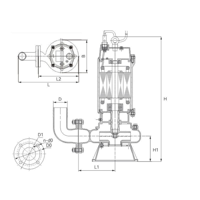10 80WQ(D)40-9-2.2S 40 9 2.2 220/380 80 2860/2900 431 169 283 228 564 122 Φ76 Φ150 4-Φ17.5 Φ190