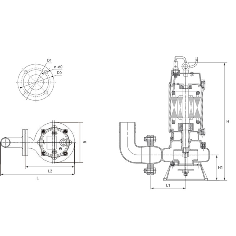 | 14 | 150WQ180-30-30S | 180 | 30 | 30 | 380 | 150 | 1450 | / | / | / | / | / | / | Φ150 | Φ225 | 4-Φ17.5 | Φ265 |